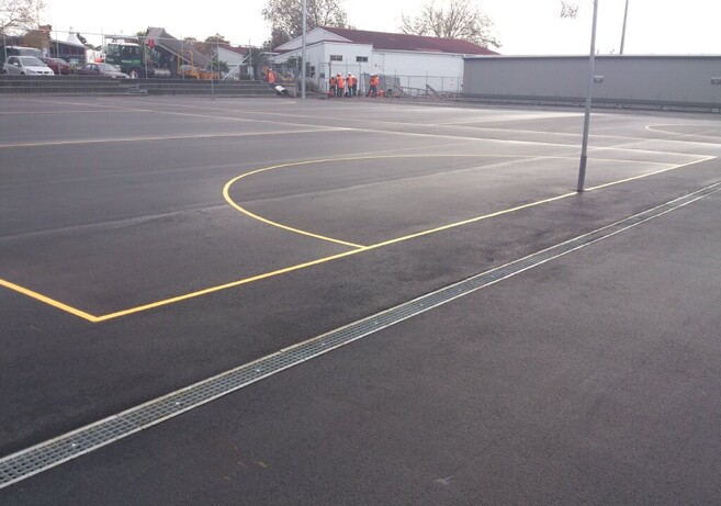 Howick Pakuranga Netball Courts. Master Planning for the stage redevelopment of the existing facilities. Completed to date are the implementation of Stage 1 (renewal to create Premier Courts) and Stage 3 (renewal of existing courts). Associated works included improved drainage, modular precast concrete seating, fencing, lighting to National Sports standards, improved surfacing, standardised line markings, post and hoops, access and fencing.