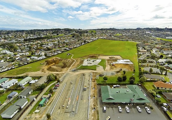 Randwick Park, Manurewa. Development of two new car parks areas, 4 new sports fields, central walkway, hard-court surfaces (basket ball, tennis, volleyball and cricket nets) and provide support for a new Pavilion Building. Associated works included improved drainage and irrigation.